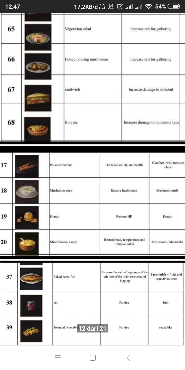 Makanan masakan lifeafter bukan hanya memberikan anda points dalam kelaparan anda namun juga bisa memberikan anda spesial buff pada setiap masakan. Resep masakan lifeafter.